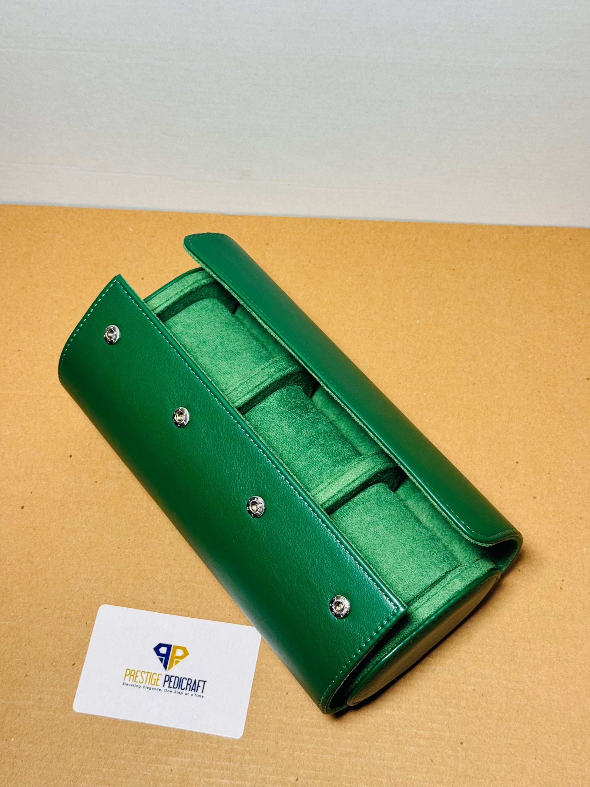 3 Slot Leather Watch Roll – Green Travel Case | Customizable
