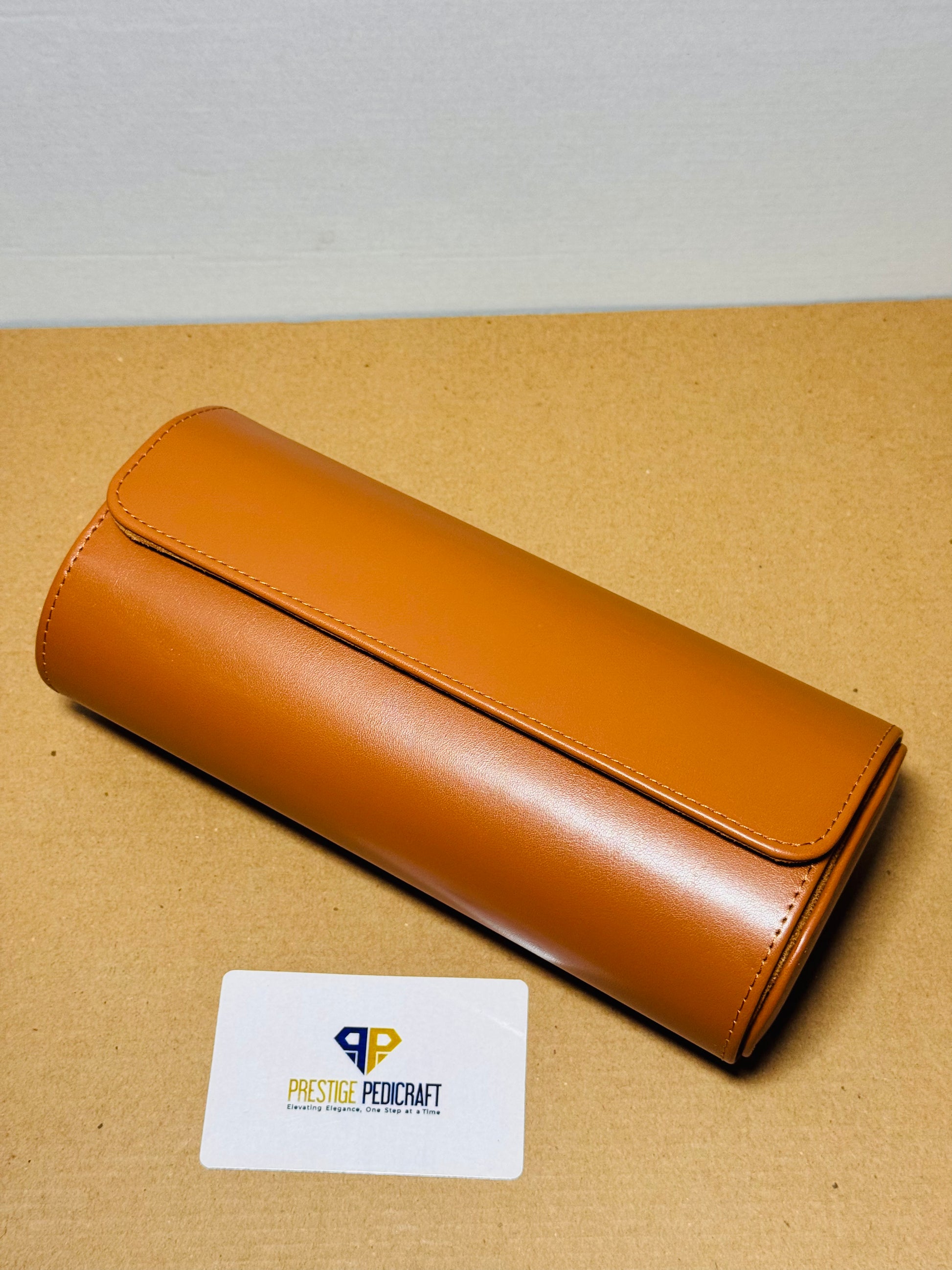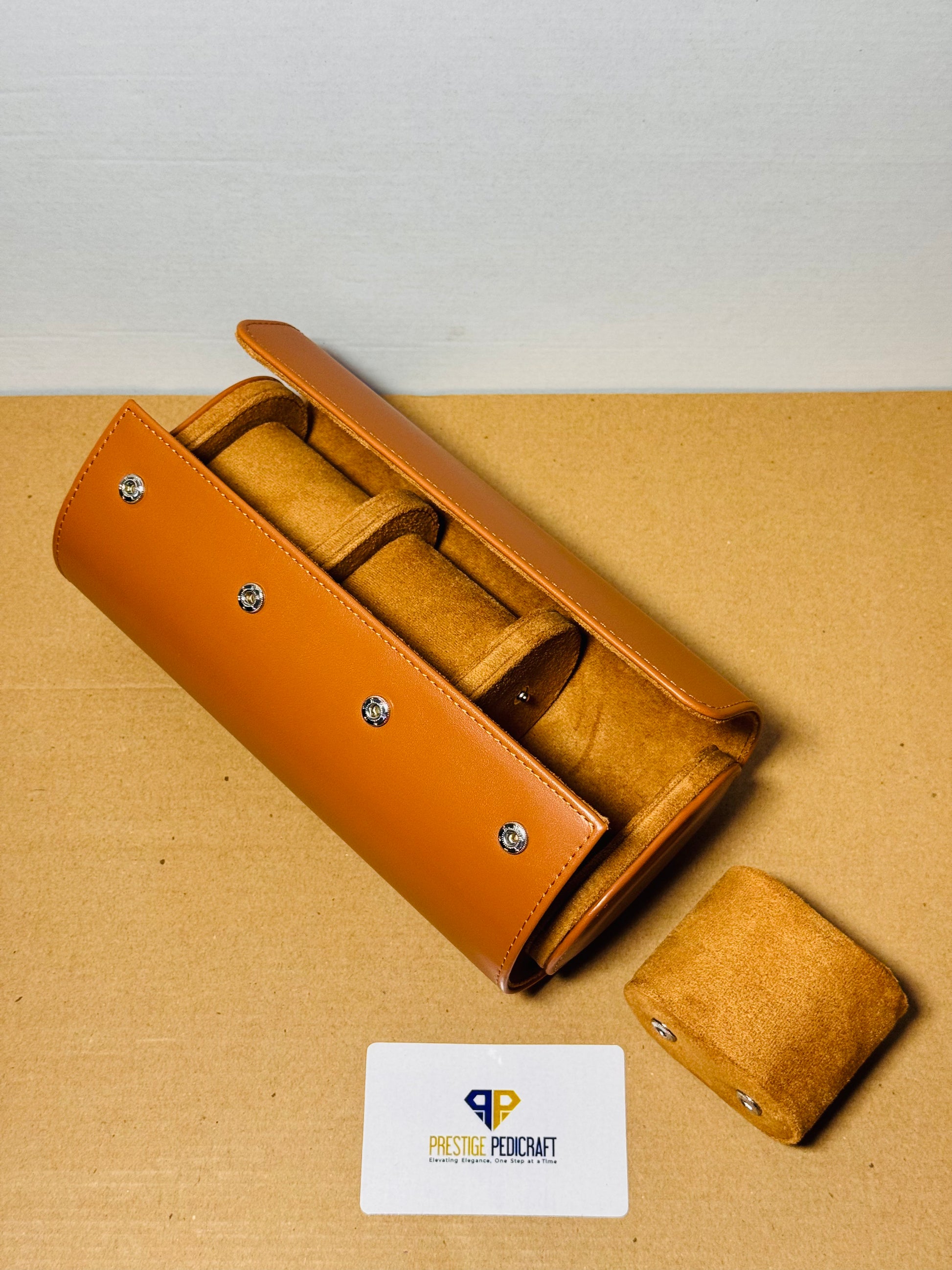 3 Slot Leather Watch Roll – Khaki Travel Case | Customizable